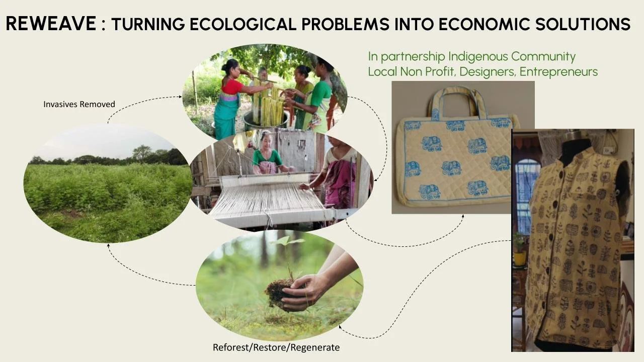 Remove invasives from unproductive cropland, tea gardens, and degraded forest land to restore biodiversity, soil health, and socio-economic crisis across the region. Innovating eco-solutions from invasive-infested croplands to restore biodiversity, elephant habitat and foster economic growth through a suite of eco-manufacture products (fiber, fabric, paper, produced by the community.